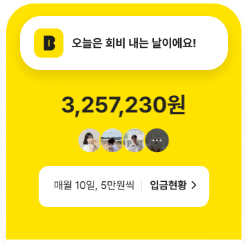 회비 내는 날, 회비 금액을 규칙으로 정하여 회비 내는 날 자동알림, 미납 멤버에게 한번에 회비를 요청할 수 있습니다.
