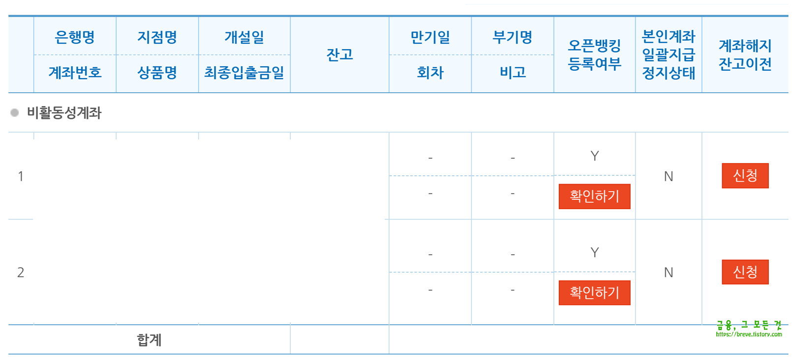 이 글에선 계좌정보통합관리서비스 페이지로 진행하겠습니다.