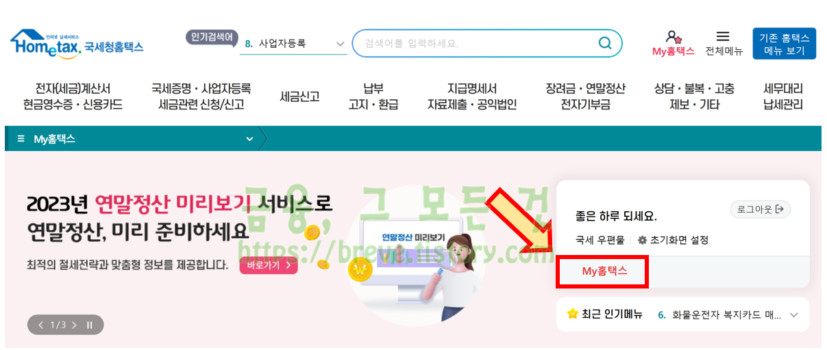 - 홈택스 접속: 홈택스 웹사이트에 접속합니다.