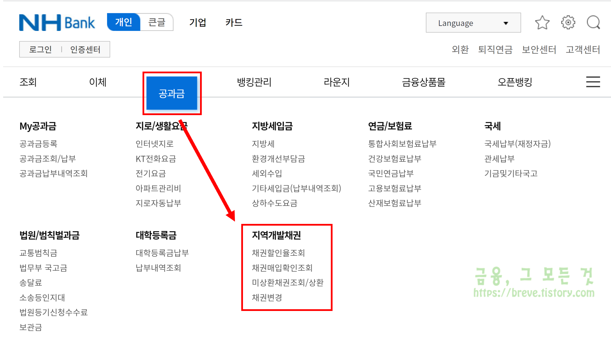 - 공과금 > 지역개발채권 > 채권매입확인조회
