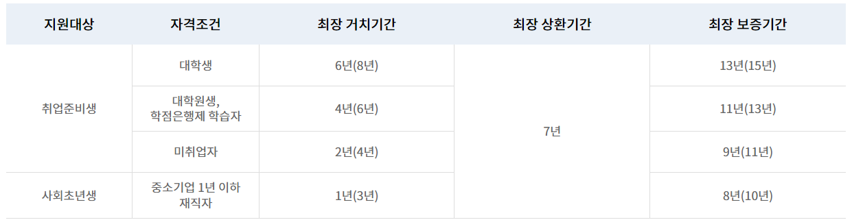 최장 거치기간은 6년에서 8년, 최장 상환기간은 7년에서 13년까지 가능합니다.